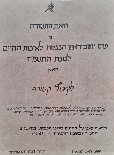 קבלת פרס יושב ראש הכנסת