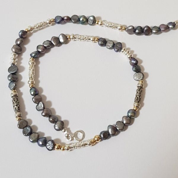מייה שרשרת פנינים לבנות וורודות עם חרוזי גולדפילד