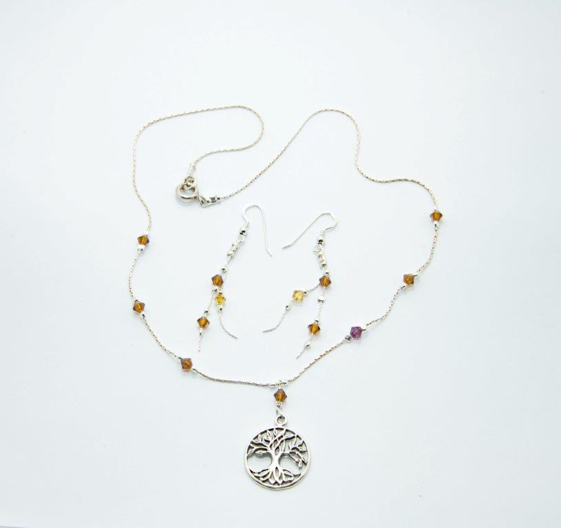 The tree of life with reddish beans silver necklace